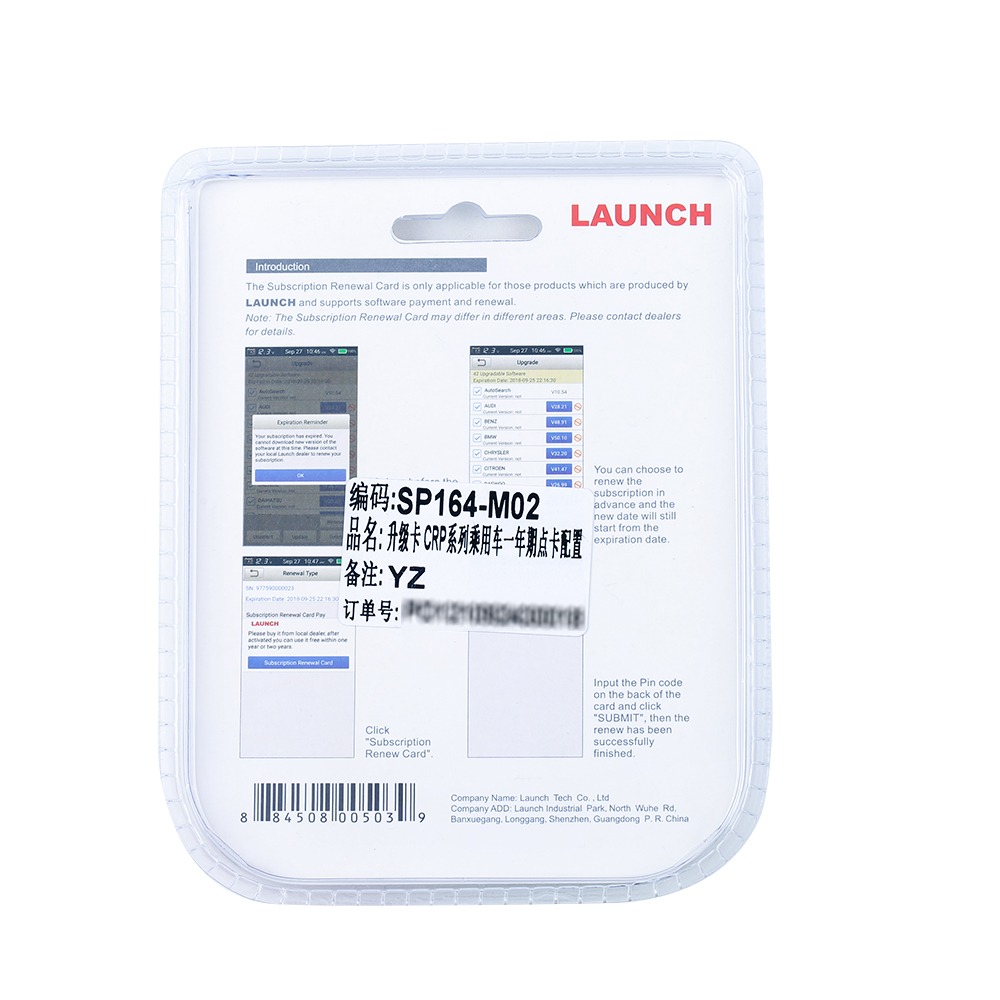 One year renewal card for Launch Creader CRP429 / CRP429C / CRP479 / CRP909 / CRP909E / CRP909X / CRP Touch Pro Elite.